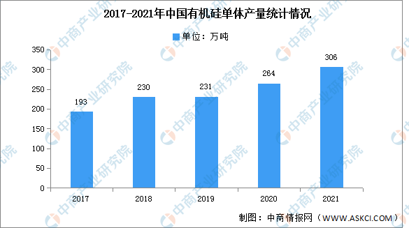 近年来有机硅产量一直保持稳定增长,2021年有机硅产量达306万吨,同比增长15.9%。