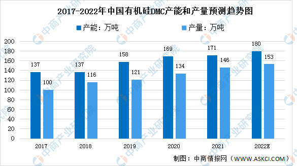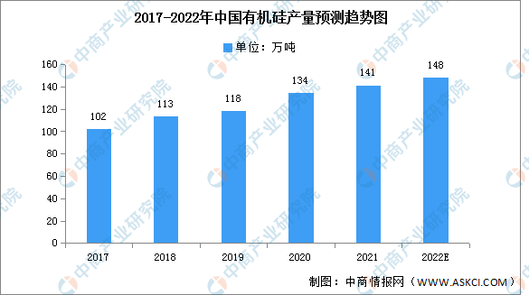 近年来,国内有机硅行业扩产稳步推进,2020年有机硅产量约为134万吨,行业产能利用率为79.3%。有机硅材料由于其特性而被大量应用于半导体、新能源车、5G等产业,随着这些新兴产业的快速发展,有机硅产量也将进一步增长。预计2022年有机硅产量将进一步增长至148万吨。