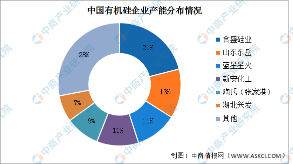 目前,仅有少量的公司具备充足的技术积累并实现规模生产,前六企业产能超过70%。截止至2022年3月底,合盛硅业的有机硅产能占比最多,达21%。其次分别为山东东岳、蓝星星火、新安化工、陶氏(张家港)、湖北兴发,产能占比分别为13%、11%、11%、9%、7%。