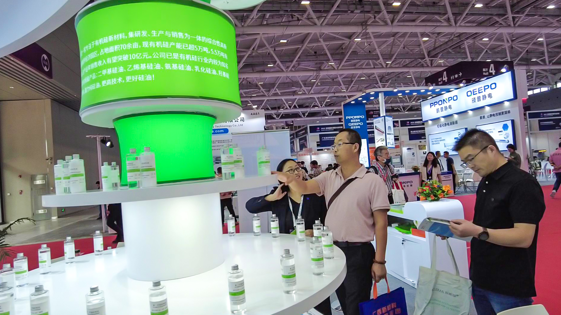 此次展会,在叶光华董事长带领下,派出黄山总部与广州分部的销售精英们隆重参展。展会现场交流气氛热烈,小伙伴们热情招待客户,耐心解答客户问题,与客户进行深切的交流和沟通。同时我司带来了主打产品:聚二甲基硅氧烷5到12500粘度,乙烯基硅油100到20000粘度,氨基硅油2211到2253等不同粘度含氮量共11个牌号的新品以及多个牌号的有机硅乳液参展,高品质高质量的产品也得到了来访客户的一直好评与认可。米兰(中国)的硅油具有高闪点、低挥发、低酸值的特色,不含钾离子、钠离子、三甲胺等离子,米兰(中国)的产品特色是强力纯硅油、更高技术、更好硅油!