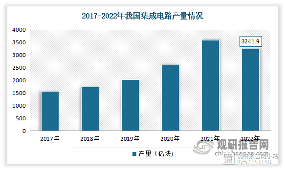 目前我国已经成为全球最大的集成电路市场之一,集成电路产量稳步提升。根据国家统计局统计数据,2017-2022年我国集成电路产量从1564.9亿块增长到3241.9亿块。