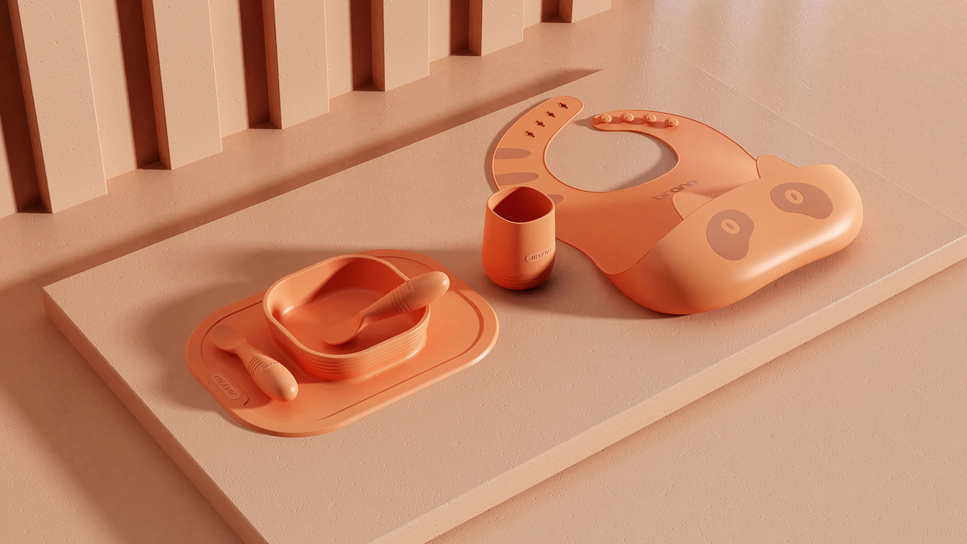1.硅胶餐具是采用的食品级的硅胶材质模压成型,无毒无味安全环保。