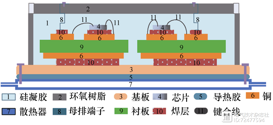近十年来,绝缘栅双极晶体管(Insulated Gate Bipolar Transistor, IGBT)从芯片设计、工艺、测试到器件封装技术等方面均取得了重大进步。在器件封装方面,有机硅凝胶材料因其具有优良的耐温、防水和电气绝缘性能等,成为电子器件必不可少的封装绝缘材料。目前,硅基IGBT模块灌封用的有机硅凝胶是一种双组份加成型室温或加温硫化有机硅凝胶。
