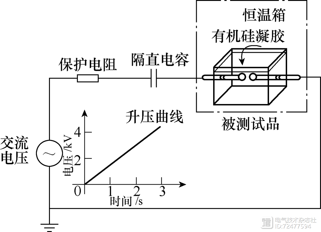 绝缘材料的击穿特性直接反映材料的绝缘水平,击穿场强是表征电介质绝缘特性的关键电气参数。目前,虽然在有机硅凝胶的耐电性能方面已开展了一些研究,但温度对有机硅凝胶材料工频耐电特性的影响规律和影响机制尚不明确。